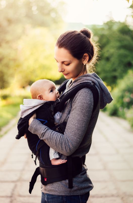 Baby ist immer mit dabei im Tragesystem oder Kinderwagen und fördert durch sein wachsendes